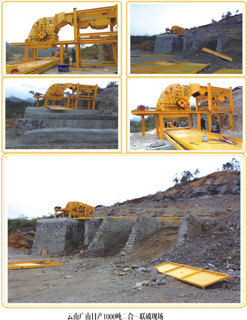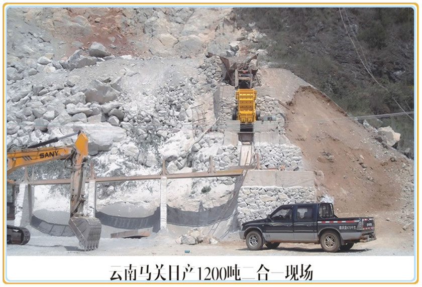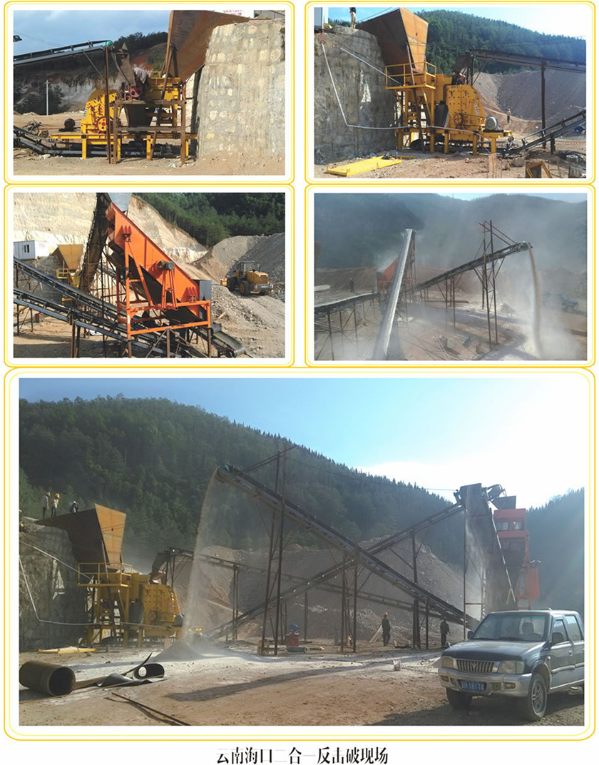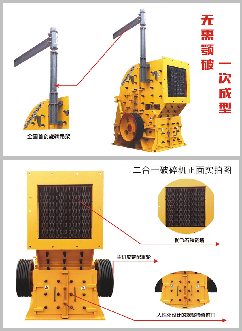 2、可作二破用,大型顎破選配小型二合一破碎機(jī),作新型反擊破用。