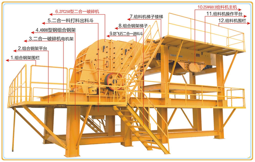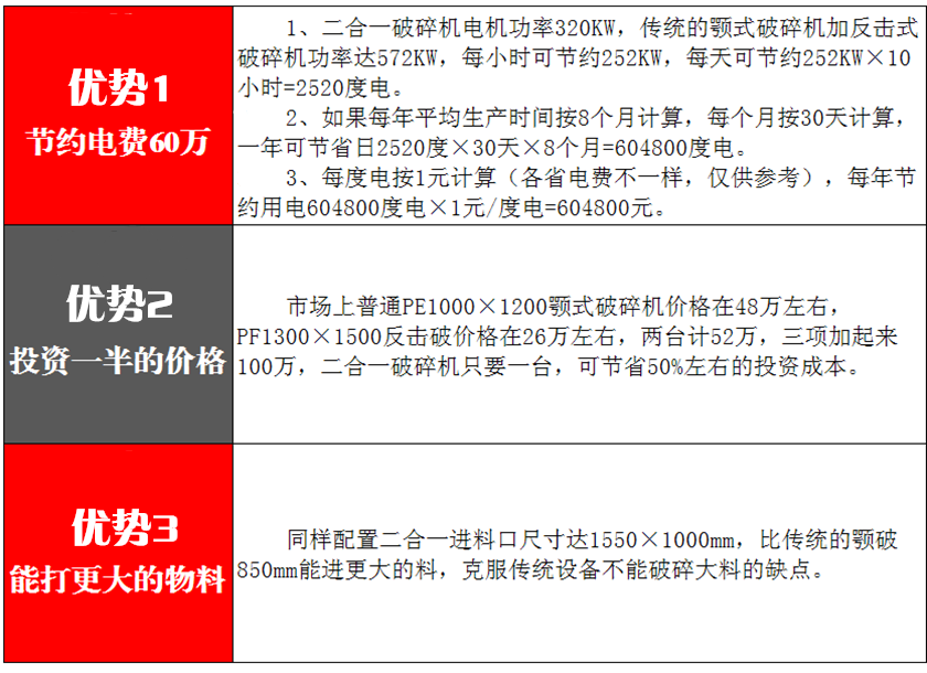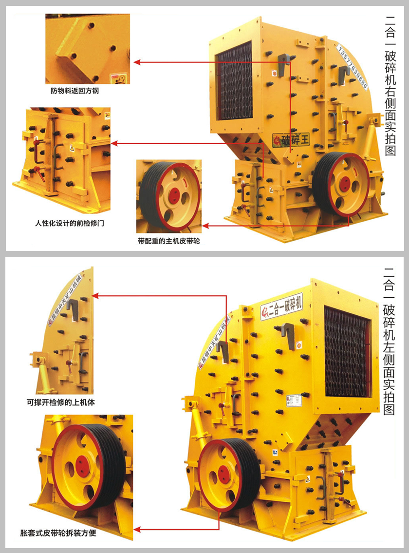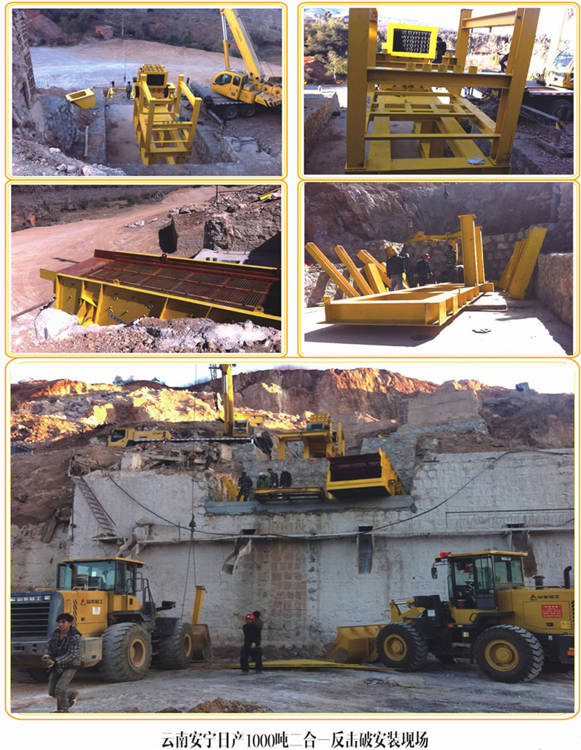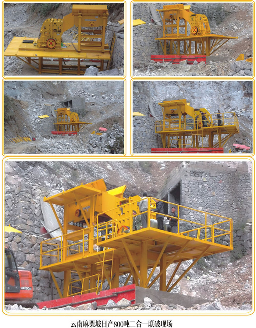 2、可作二破用,大型顎破選配小型二合一破碎機(jī),作新型反擊破用。