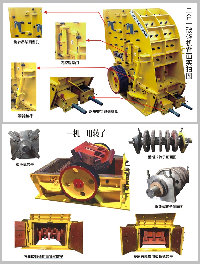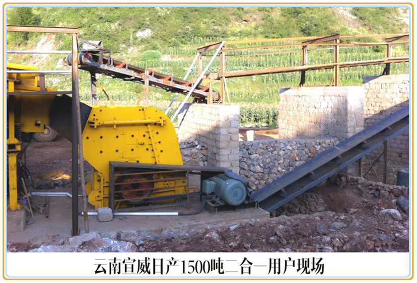 普通石料除錘頭和反擊襯板外,整個使用過程基本不用更換配件(沒有比二合一更省配件的破碎設(shè)備)。