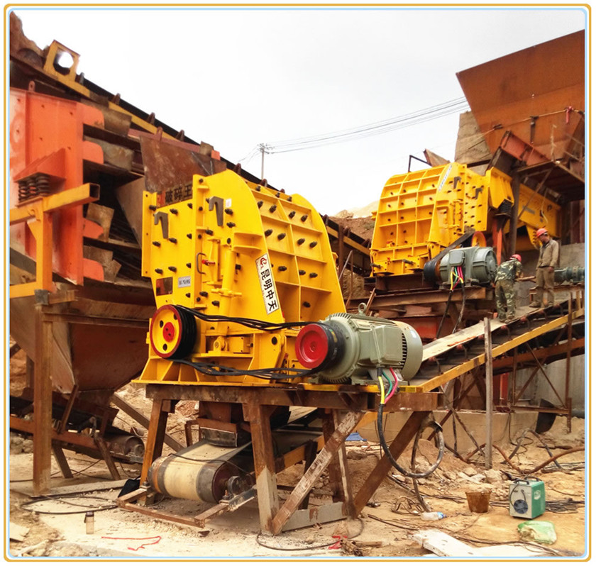 可破碎花崗巖、玄武巖、鵝卵石、鐵礦石等高硬度、磨損大的物料。破碎硬質(zhì)石料選用鑲大金牙錘或者同時澆鑄的硬質(zhì)合金錘,也可選用反擊式板錘。
