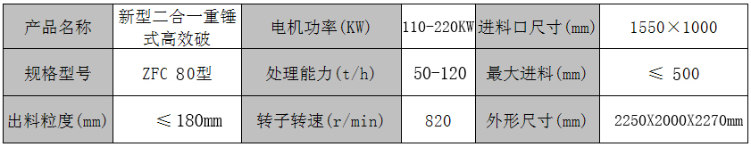ZFC80型新型高效節(jié)能型二合一破碎機(jī)術(shù)參數(shù):