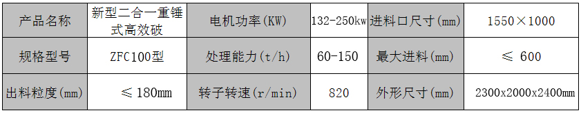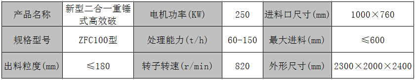 ZFC100型新型高效節(jié)能型二合一破碎機(jī)術(shù)參數(shù):