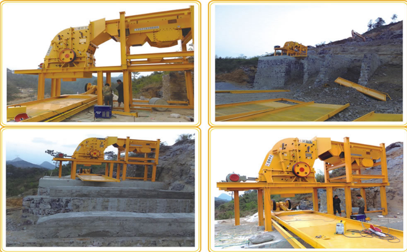 利用高速旋轉(zhuǎn)的錘頭敲擊石料,并將其拋向內(nèi)壁和篦柵,同時飛粒相互撞擊,進行破碎。由轉(zhuǎn)子、篦柵和鑲有襯板的機殼等組成。有單轉(zhuǎn)子及多轉(zhuǎn)子,單排及多排錘頭等種類。轉(zhuǎn)子一般由圓盤與轉(zhuǎn)軸連成一體作為芯子,幾個錘頭鉸裝于圓盤周沿。主要技術參數(shù)為轉(zhuǎn)子尺寸。適用于中碎、細碎中等硬度的石料以及脆性物料,如石棉、石灰石、石膏、爐渣等,很少用于粗碎。