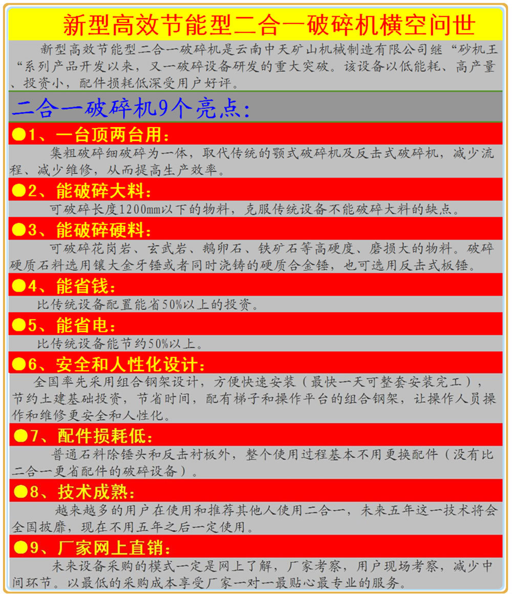 新型高效節(jié)能型二合一破碎機的八大優(yōu)勢特點: